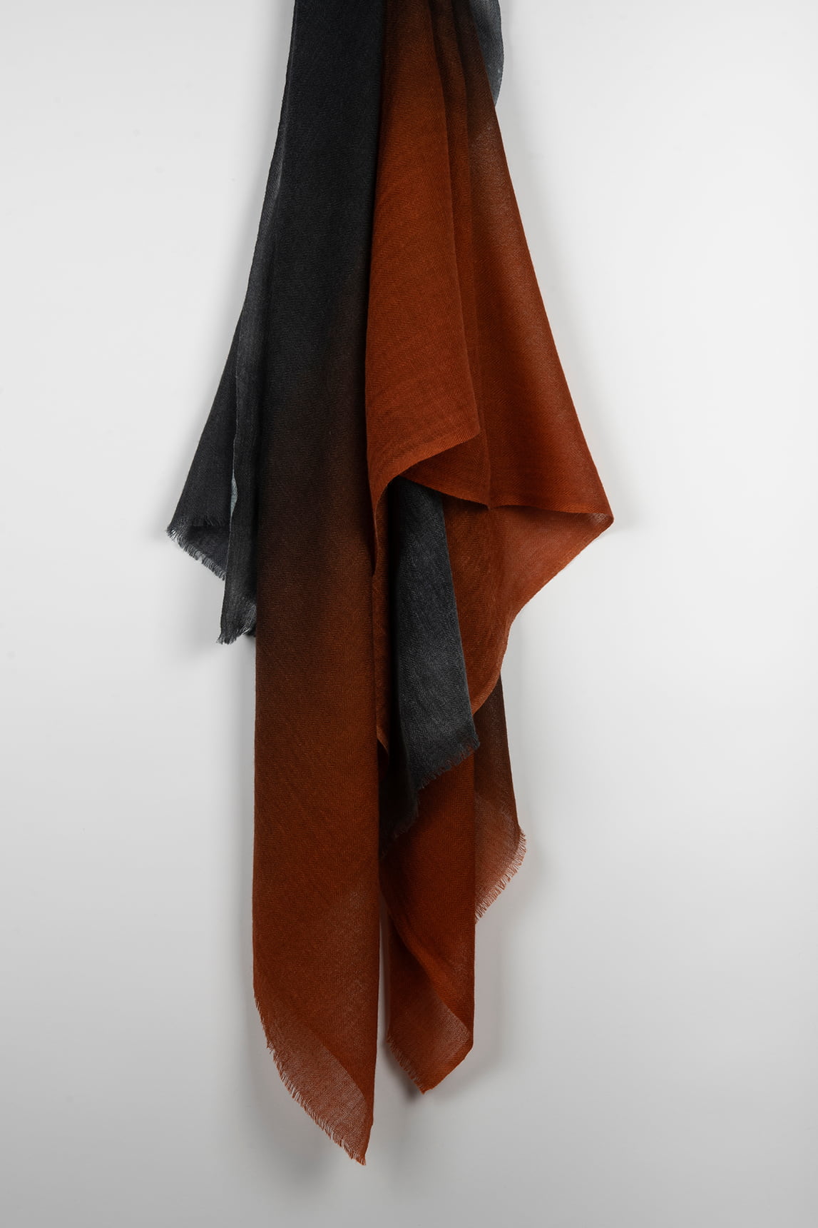 Rivera's Otranto scarf fuses sobriety and warmth in a striking autumnal palette. With an elegant gradient from black to a cauldron hue, this piece adds depth and contrast to any look. Its airy texture and lightness make it ideal for both everyday looks and special occasions. Versatile, functional, and full of character, this accessory will elevate your wardrobe with contemporary style.