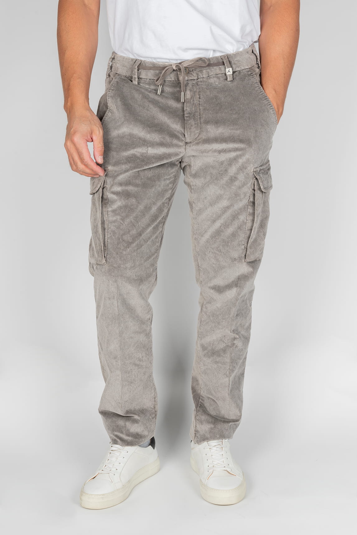- Pantalón en tejido de pana de canalé fino en color topo.