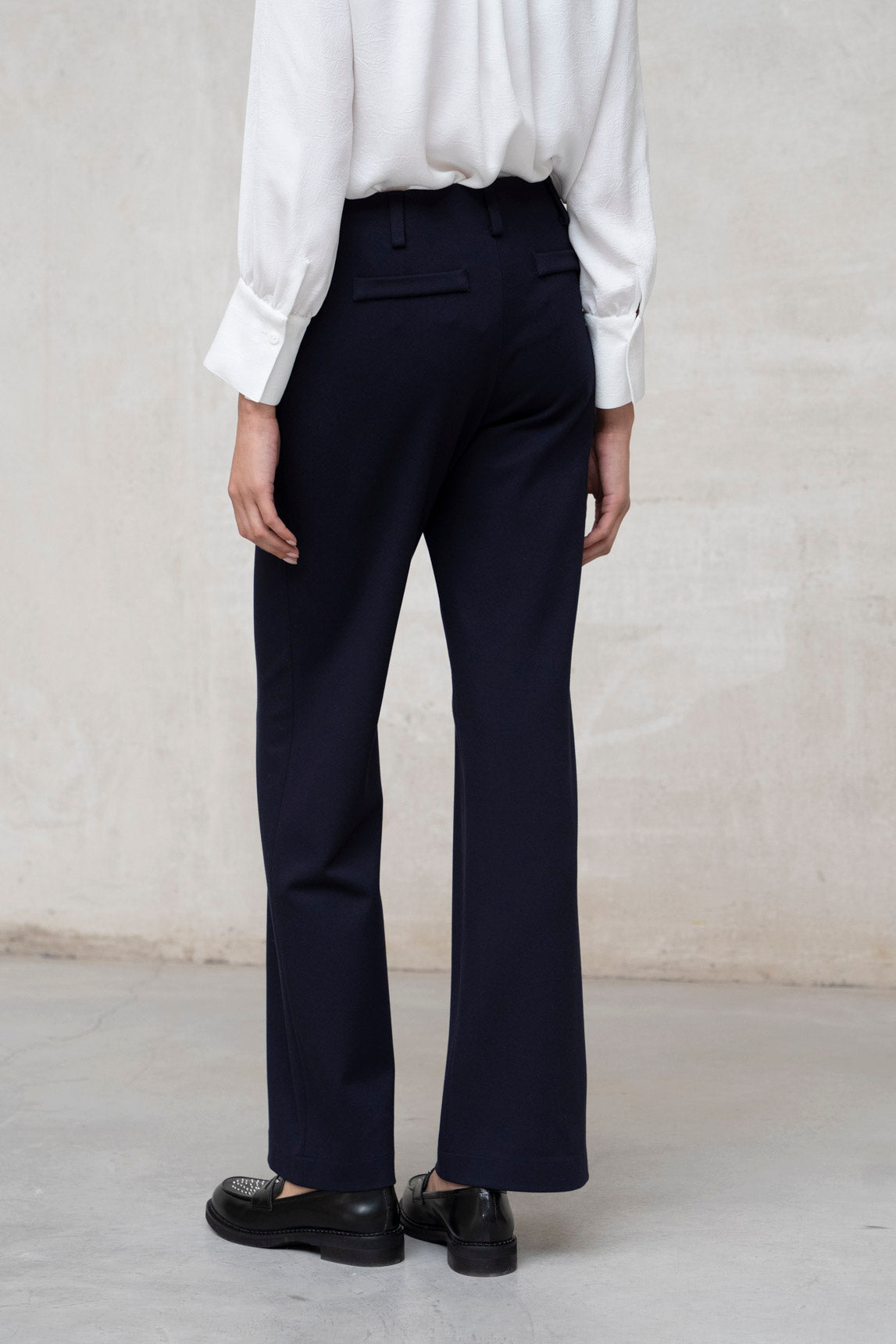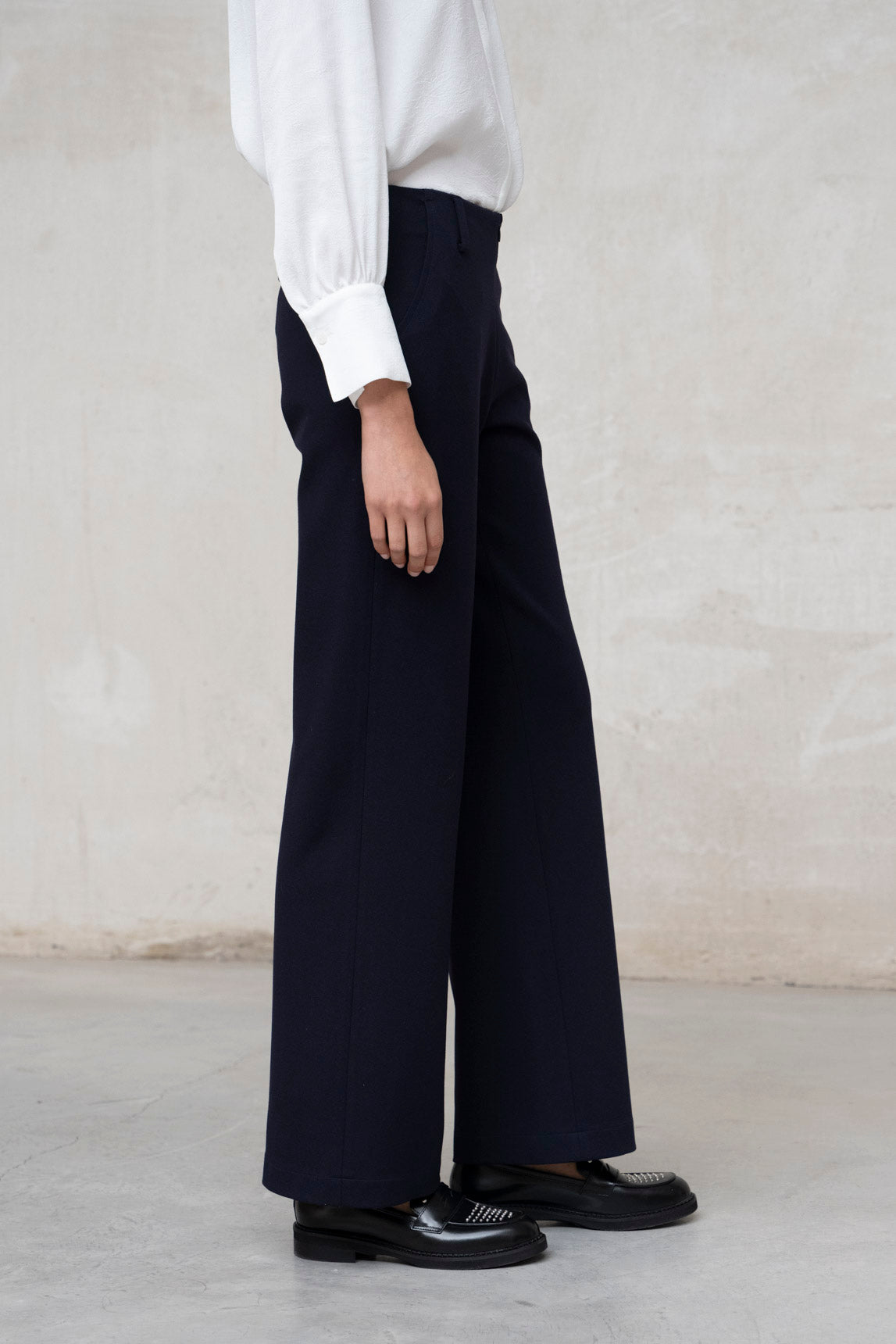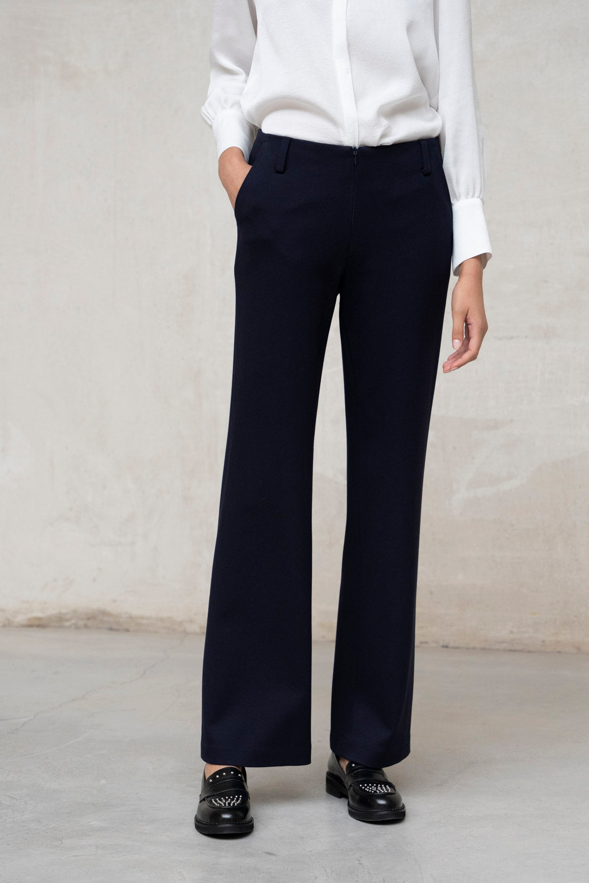 The Brenta pants in navy blue are a staple piece with a clean and flattering design. Their straight cut and mid-high rise make them a comfortable and elegant staple, ideal for both formal settings and casual chic looks. The hidden closure provides discretion and a polished finish, while the side pockets add functionality without compromising aesthetics. A piece that pairs with everything from classic shirts to flowing blouses.