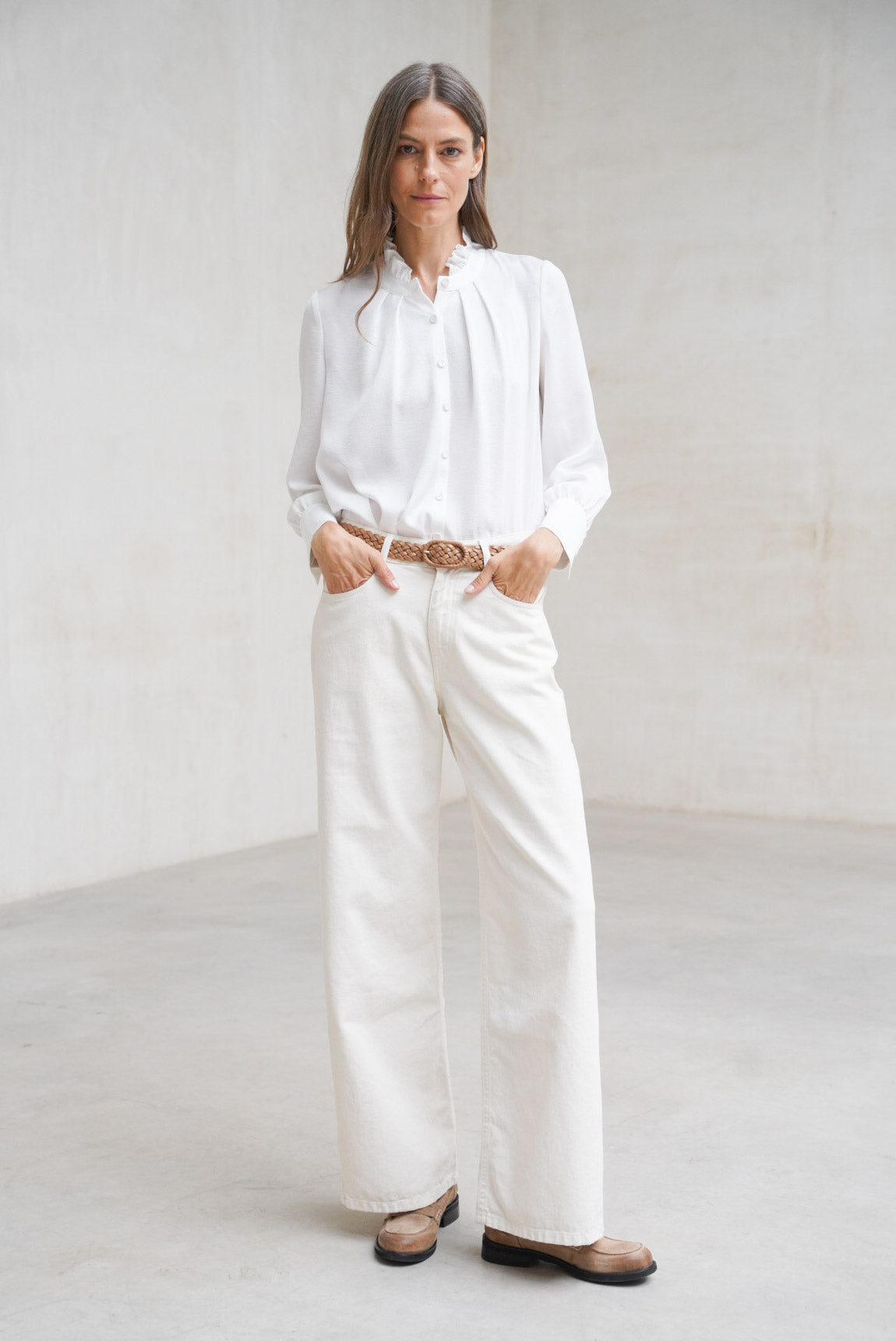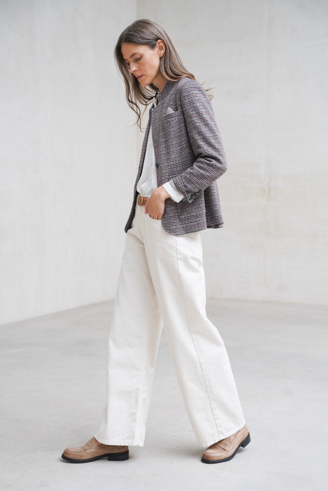 The raw Evoque pant is a luminous reinterpretation of the classic Rivera jean. Made with certified recycled fabrics and sustainable fibers, it maintains the same timeless five-pocket design, with a straight silhouette and mid-rise. Its soft, neutral hue makes it a versatile piece, perfect for fresh, balanced looks year-round.