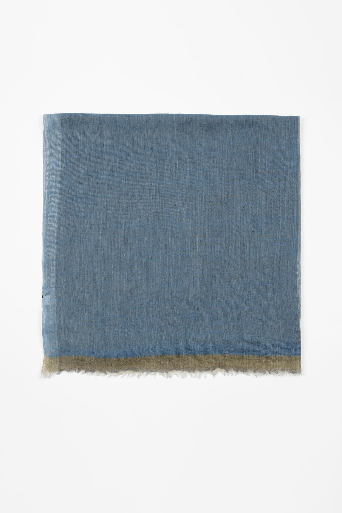 - Scarf in shades of dusty blue and light olive green, 100% wool.