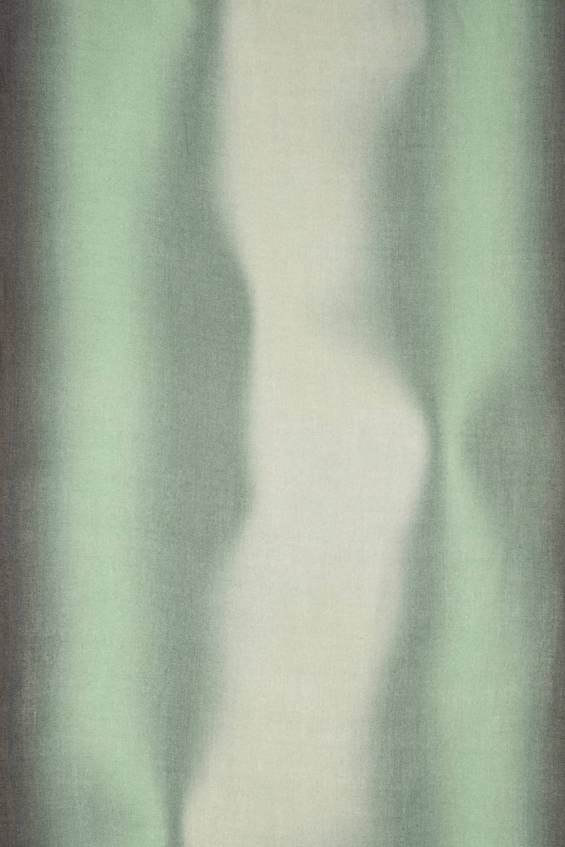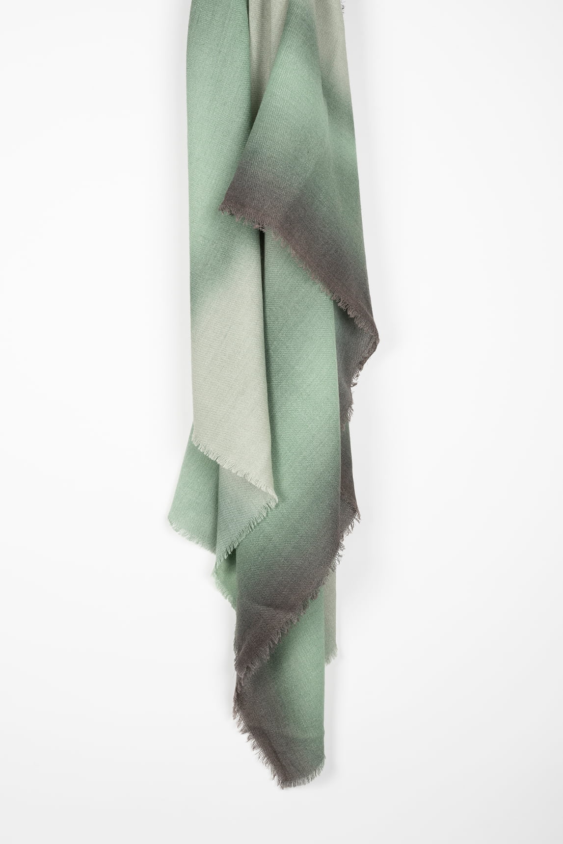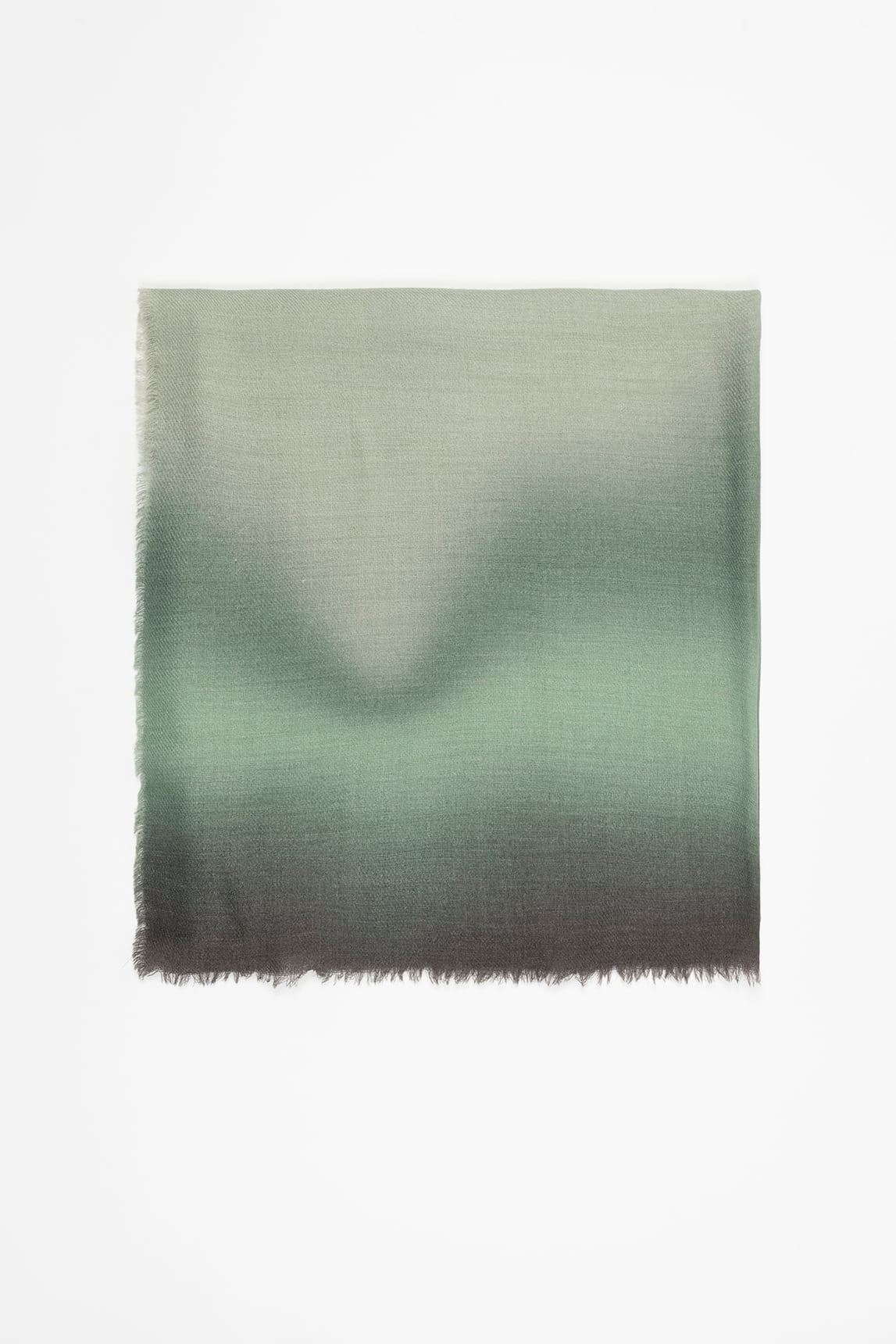 - Gradient scarf in green and grey tones.