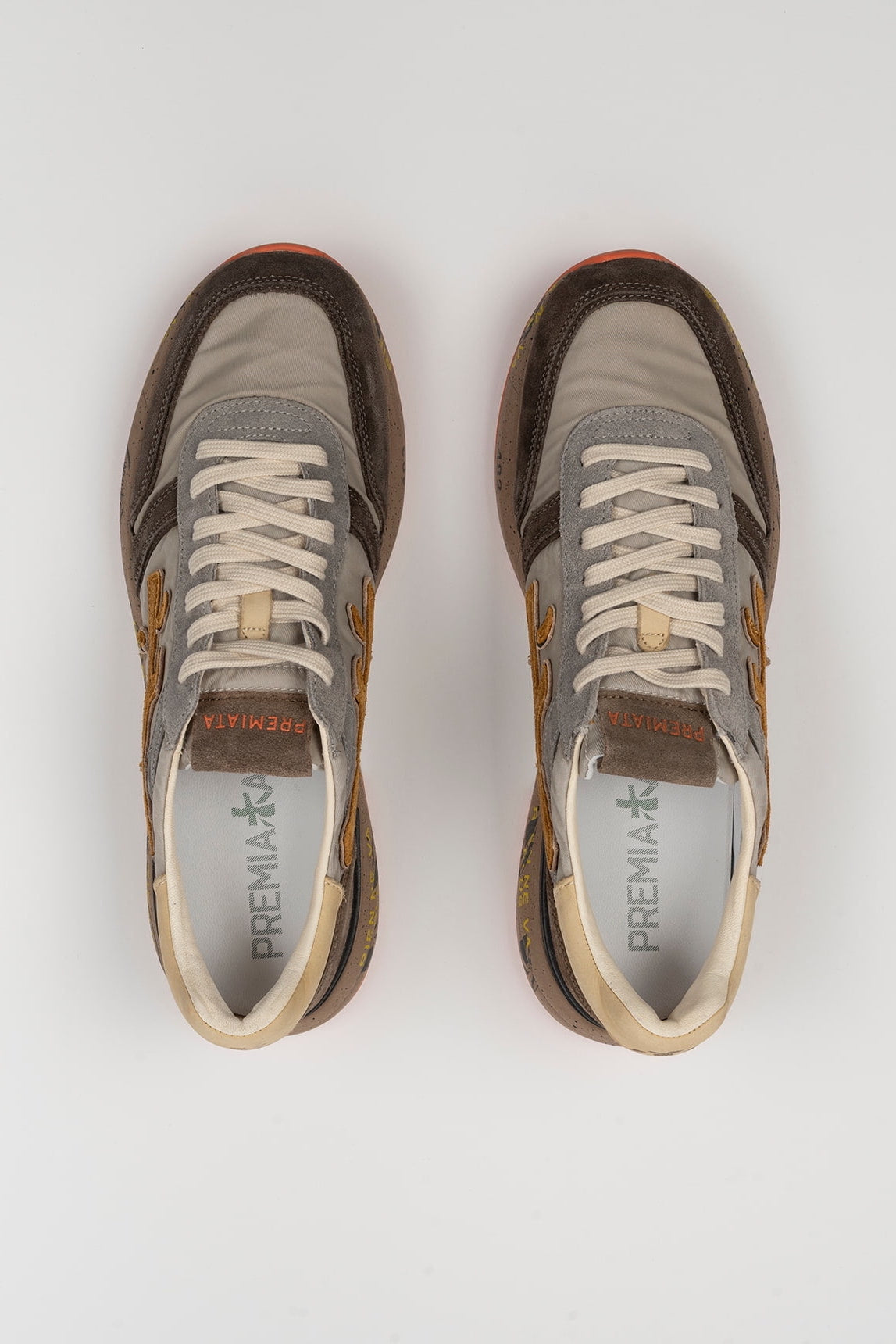 - Logo Premiata XL en lateral en amarillo mostaza.