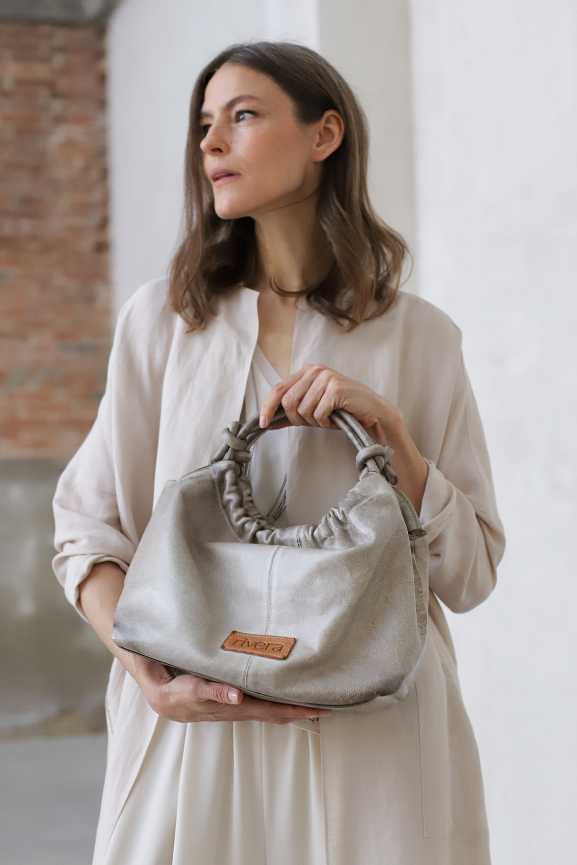 El bolso Alide de Rivera destaca por su diseño relajado y elegante. Fabricado en piel, combina textura y flexibilidad para ofrecer comodidad y estilo en una sola pieza. Su cierre fruncido y las asas con nudos le otorgan un carácter artesanal, mientras que su tamaño mediano lo convierte en un compañero perfecto para el día a día. Un accesorio que equilibra a la perfección sofisticación y naturalidad.