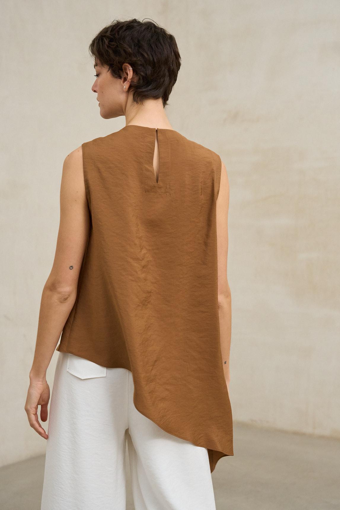El top Aristea cobre es una prenda de líneas contemporáneas que destaca por su diseño asimétrico y su silueta fluida. Su escote cerrado y su bajo en pico lateral aportan dinamismo al conjunto, creando un efecto estilizado y moderno. Confeccionado en tejido ligero y de caída natural, se adapta suavemente al cuerpo sin ceñirse, proporcionando movimiento y confort. El tono cobre, cálido y sofisticado, realza su carácter versátil y lo convierte en una pieza perfecta para combinar con pantalones blancos, beige o tonos tierra en looks relajados pero cuidados. Ideal como top asimétrico elegante para verano o como prenda especial para elevar conjuntos básicos, el Aristea teja aporta personalidad sin renunciar a la sobriedad. Nos esforzamos por mostrar los colores de la forma más fiel posible, pero pueden variar ligeramente respecto a la realidad.