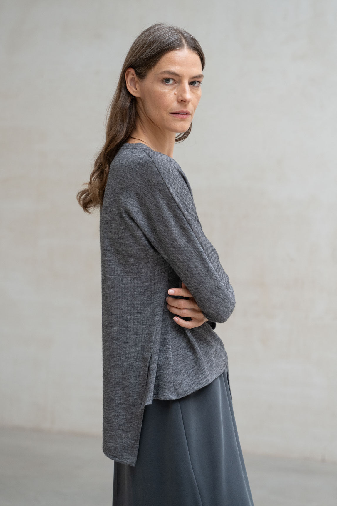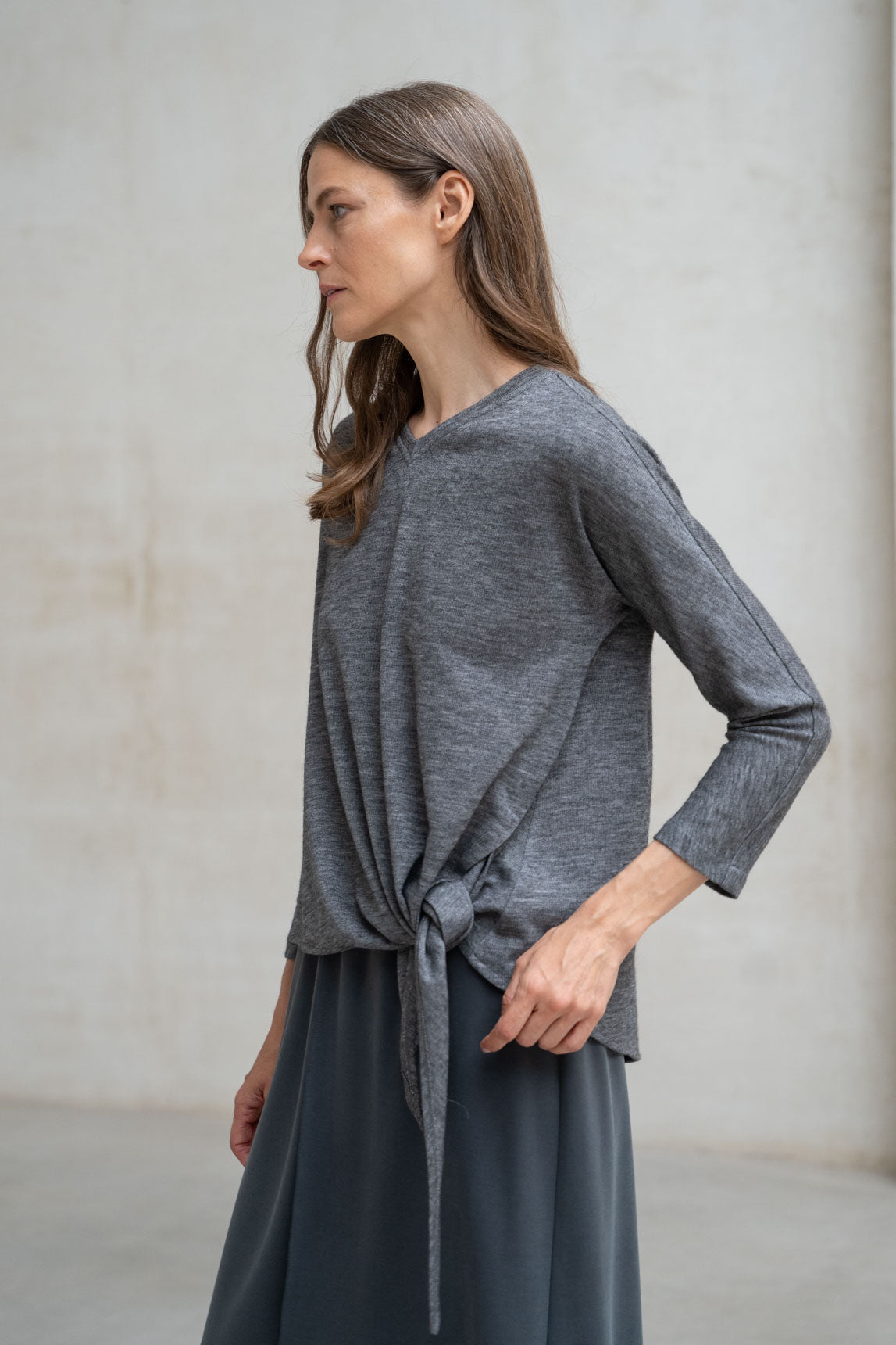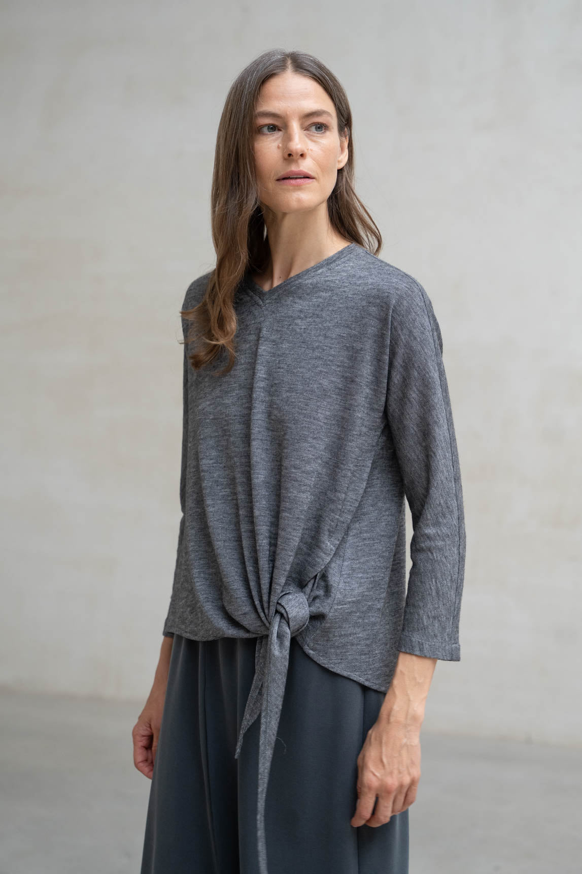 El jersey Ancona gris antracita combina comodidad y estilo en una prenda versátil y atemporal. Su detalle de lazada lateral añade un punto de distinción, mientras que el tejido suave y fluido lo convierte en una opción ideal para looks casuales o más sofisticados. El tono gris antracita es fácil de combinar y aporta sobriedad y elegancia a cualquier conjunto.