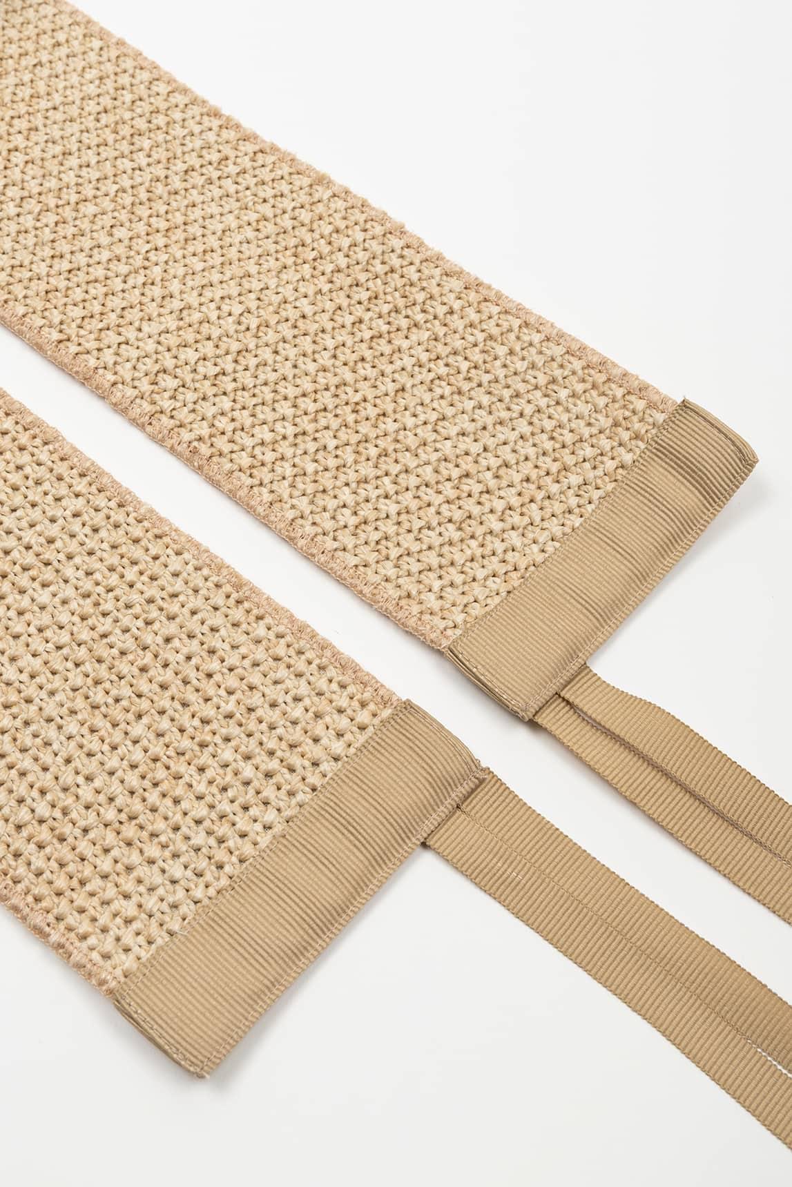 El fajín Lureia arena combina ligereza y estructura en un diseño cruzado que se adapta con suavidad a la cintura. Su textura sutil aporta interés visual sin restar versatilidad, convirtiéndolo en un complemento fácil de integrar en estilismos neutros.