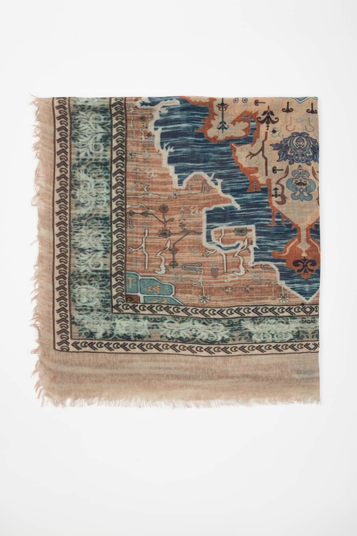 El fular étnico de Rivera fusiona tradición y estilo contemporáneo. Sus motivos ornamentales y sus colores terrosos se combinan con un azul intenso que recuerda a paisajes orientales. Ideal para elevar conjuntos neutros o monocromáticos, este accesorio es versátil, cálido y perfecto para el otoño e invierno. Su textura ligera y su acabado artesanal lo convierten en una pieza funcional y con carácter.