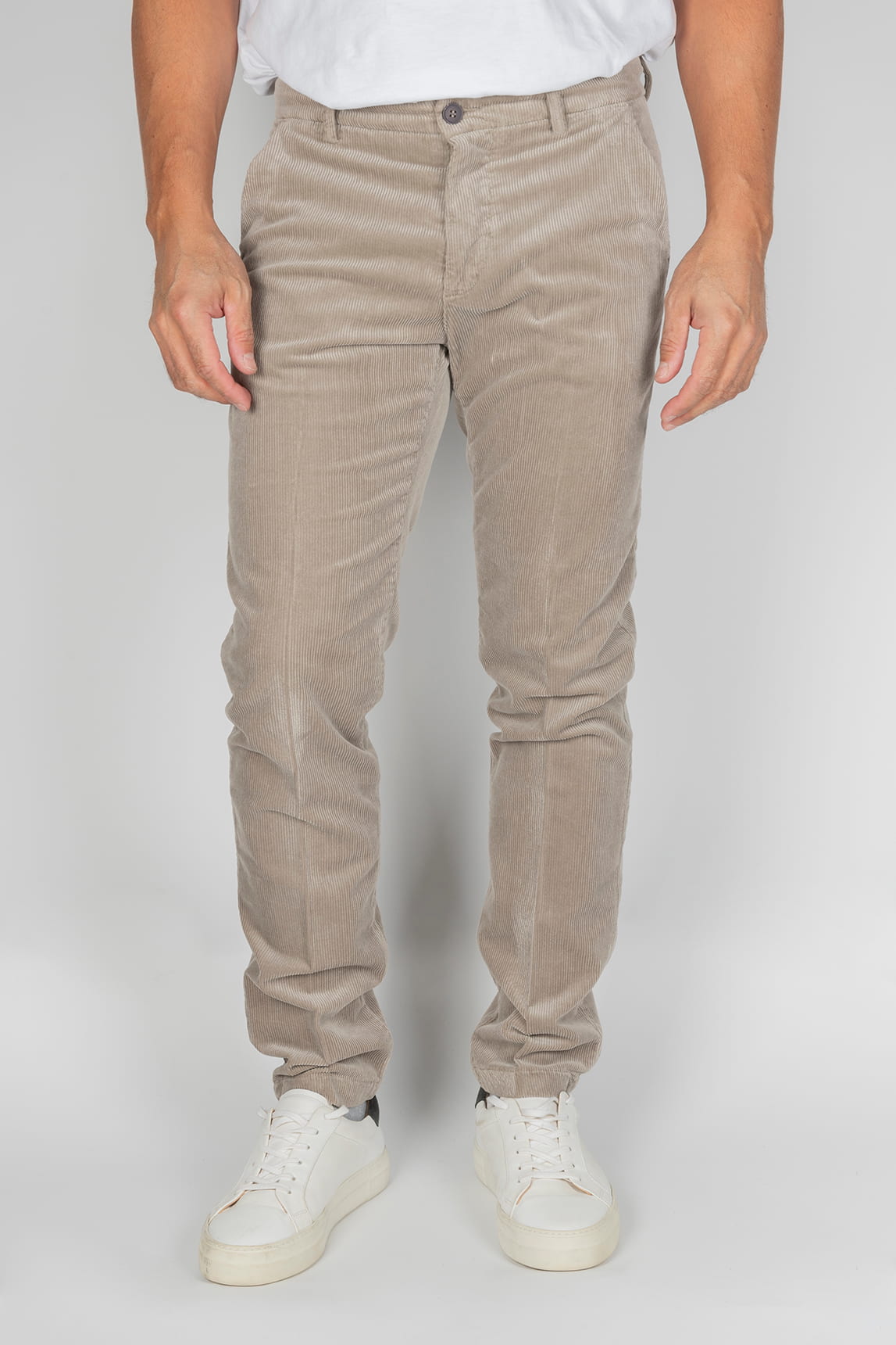 - Pantalón en pana fina de color arena.
