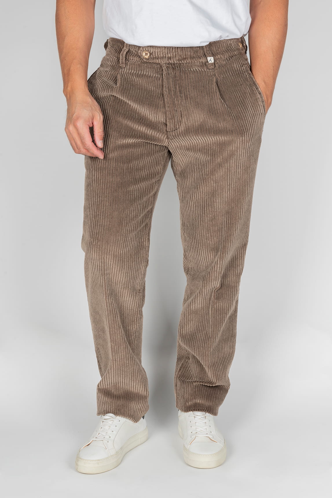 - Pantalón en tejido de pana de canalé ancho en color marrón.