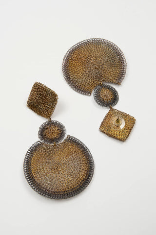PENDIENTES MALLA GRIS OSCURO Y DORADO