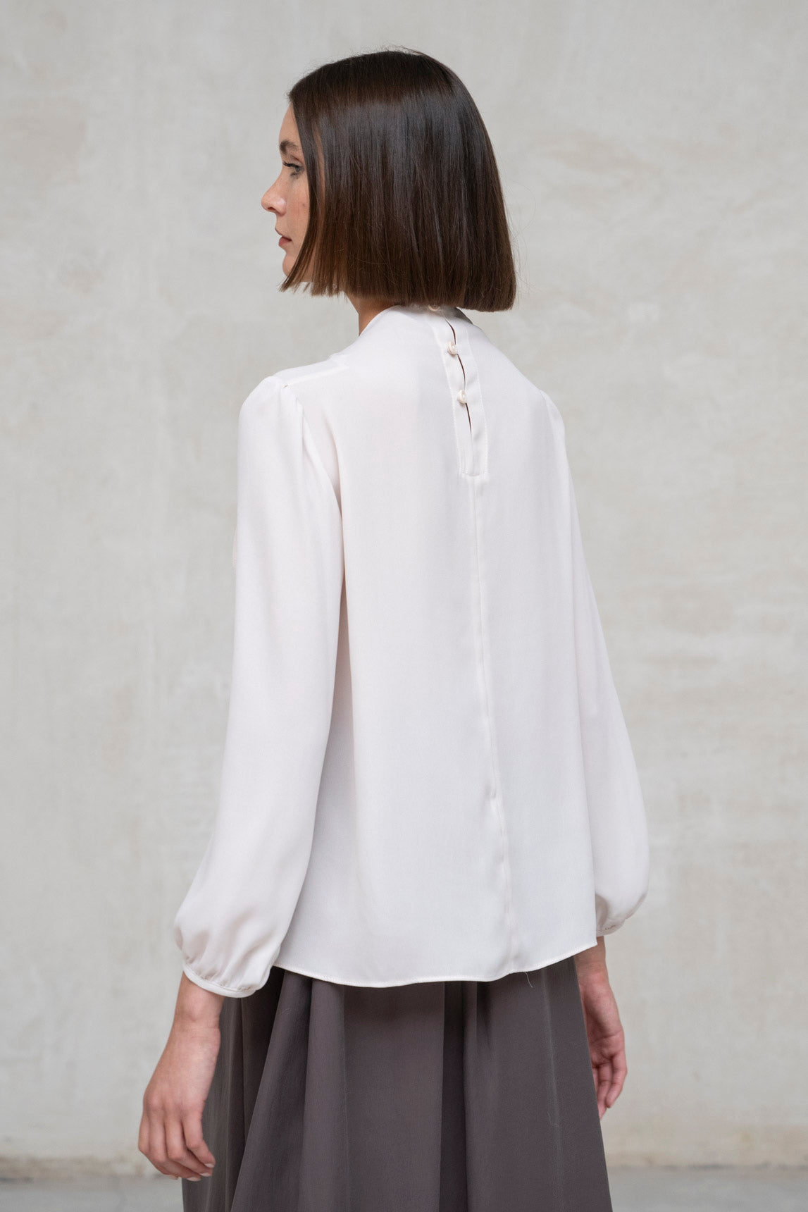 La blusa Belluno crudo es la elección perfecta para looks de oficina o eventos especiales. Su lazo en el cuello añade un aire sofisticado, mientras que su tejido fluido y diseño atemporal garantizan comodidad y estilo. Ideal para combinar con faldas midi o pantalones de vestir, aportando un toque refinado a cualquier conjunto.