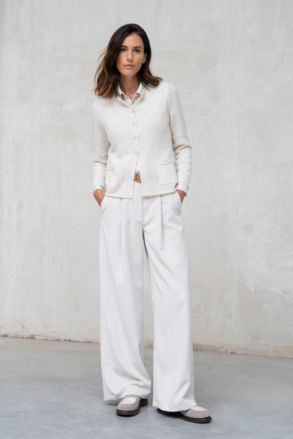 El jersey Módena crudo es una prenda básica y atemporal que combina elegancia y confort. Su tono neutro aporta luminosidad y versatilidad, permitiendo combinarlo fácilmente con todo tipo de prendas, desde pantalones de vestir hasta vaqueros. Su tejido suave y su diseño minimalista lo convierten en un imprescindible para los días de otoño e invierno, tanto para looks formales como casuales.