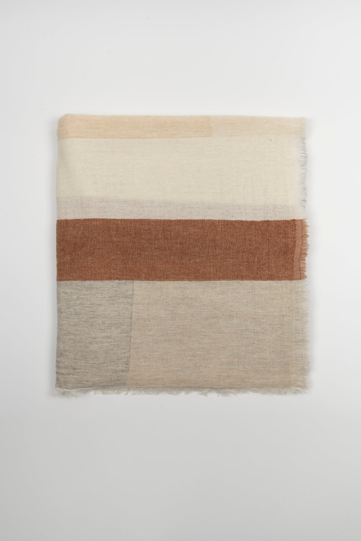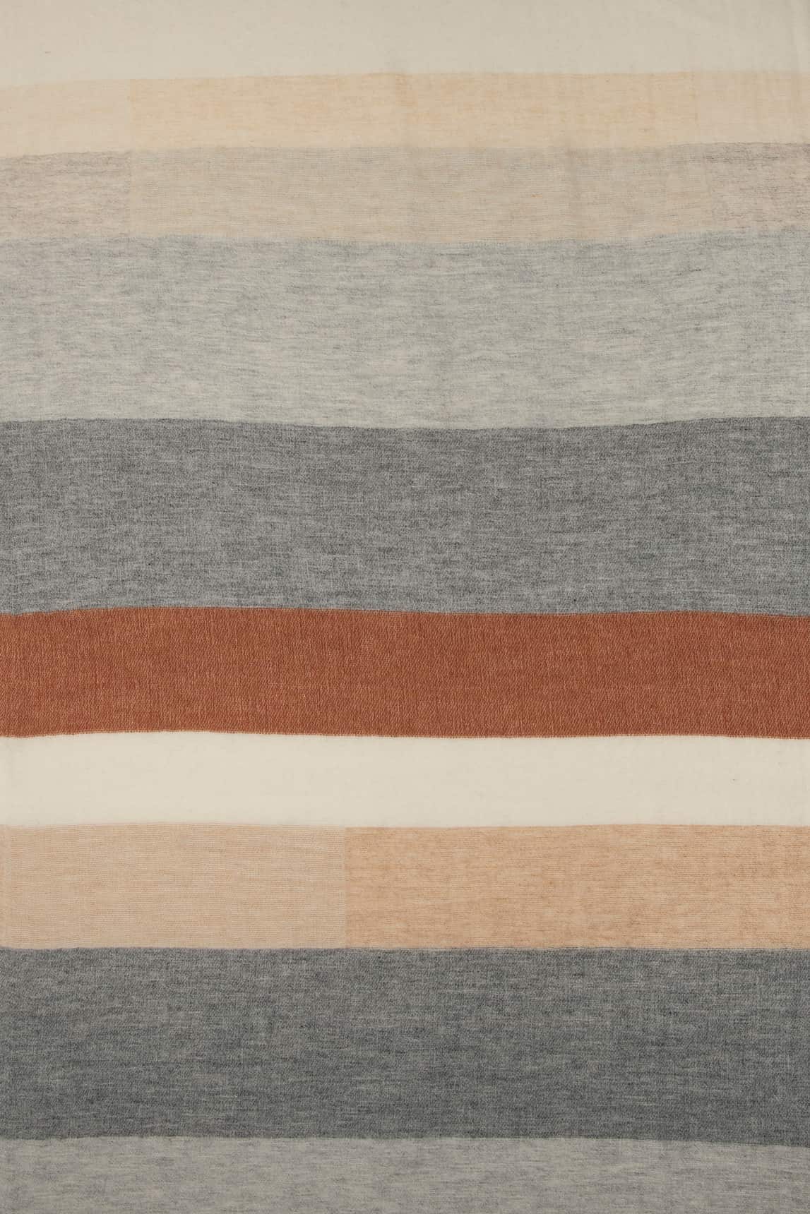 Sumérgete en la calidez y el estilo con esta bufanda grande de rayas de Rivera. Confeccionada en un tejido suave y agradable al tacto, esta bufanda combina tonos naturales como beige, gris, marrón y óxido, creando un diseño armónico y atemporal que complementa cualquier outfit. Su tamaño generoso permite llevarla de múltiples formas: alrededor del cuello, como chal o sobre los hombros para los días más fríos. Un accesorio imprescindible para aportar textura, color y elegancia a tus looks de otoño e invierno.