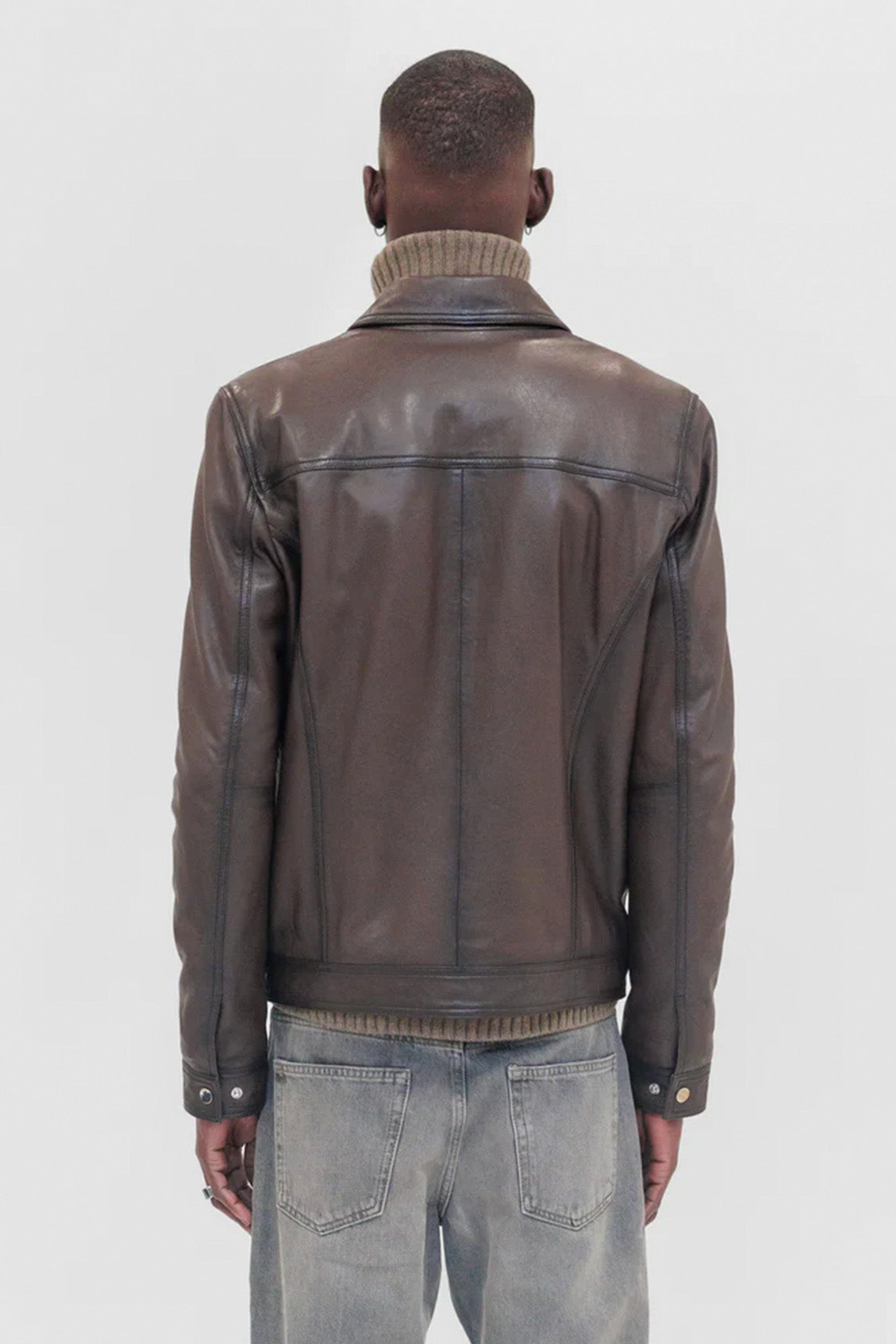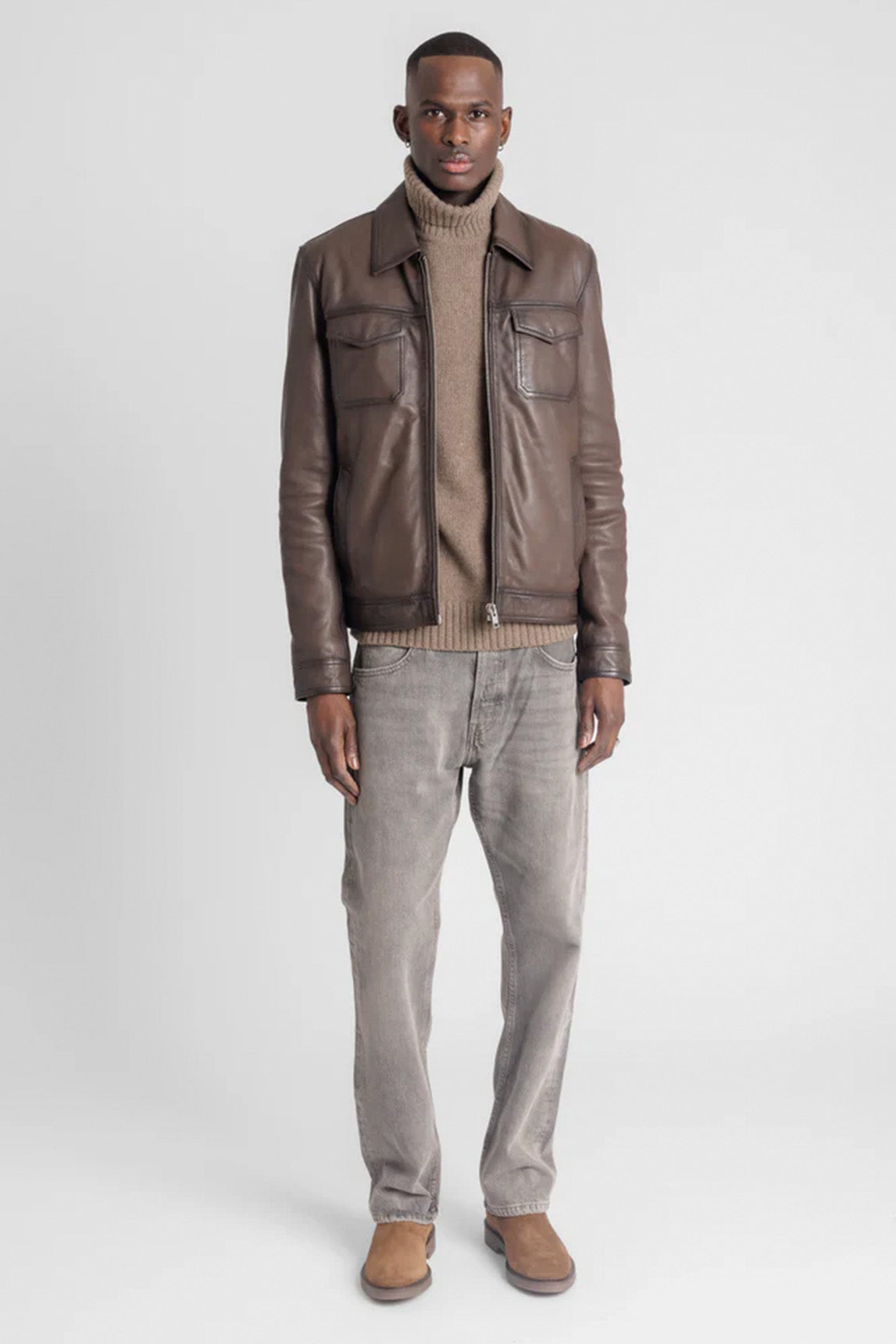 La Cazadora cuero Serge Pariente Mocca reinterpreta el clásico blouson con líneas depuradas y un aire utilitario. Versátil y fácil de combinar, funciona igual de bien con jersey o con camisa para un look casual elegante durante todo el año.