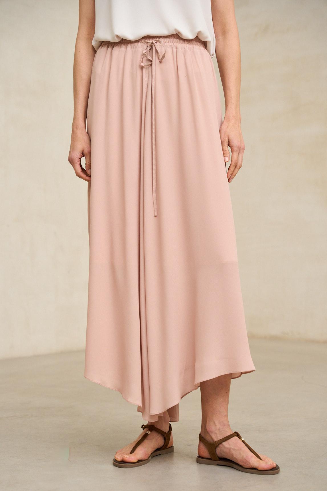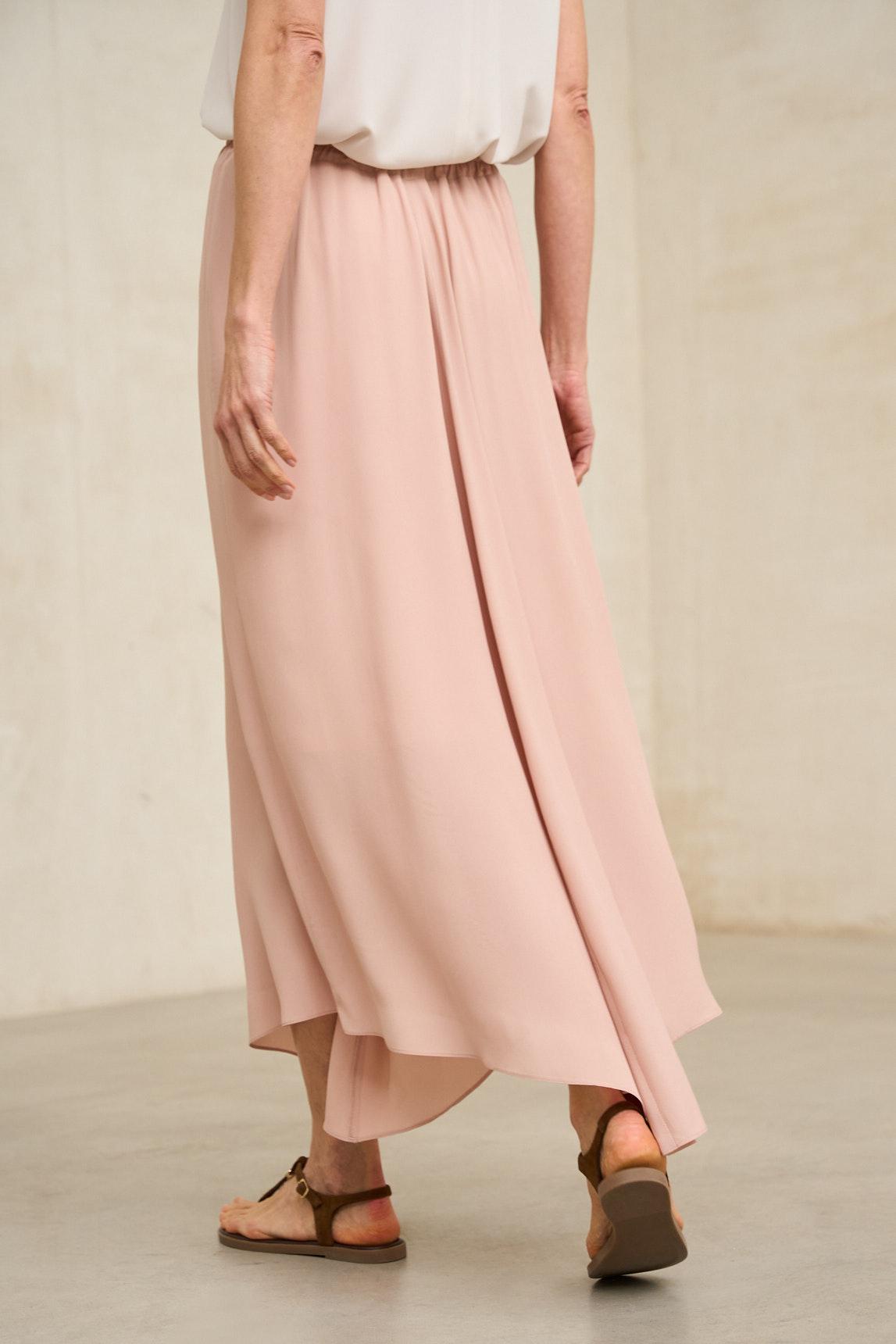 Falda midi confeccionada en tejido ligero de caída suave y movimiento continuo. Presenta diseño asimétrico con bajo irregular que aporta dinamismo sin perder elegancia. Su tono rosa empolvado liso realza la silueta con delicadeza y sofisticación. La Falda Ailén rosa empolvado destaca por su estética minimalista y femenina. El color aporta luminosidad y permite múltiples combinaciones con tops en blanco, crudo o tonos arena, adaptándose tanto a estilismos relajados como a propuestas más especiales. Ideal para primavera y verano, su fluidez estiliza la figura y aporta movimiento natural al caminar. Una pieza versátil que combina sencillez, elegancia y ligereza. Nos esforzamos por mostrar los colores de la forma más fiel posible, pero pueden variar ligeramente respecto a la realidad.