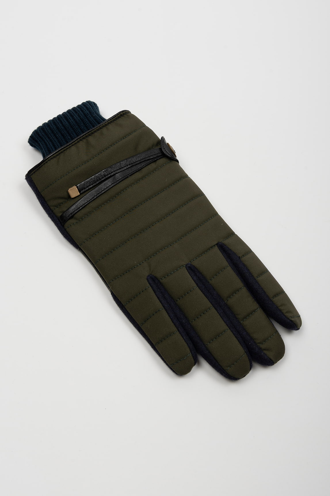 - Guantes combinados en nailon verde oliva y lana azul marino.