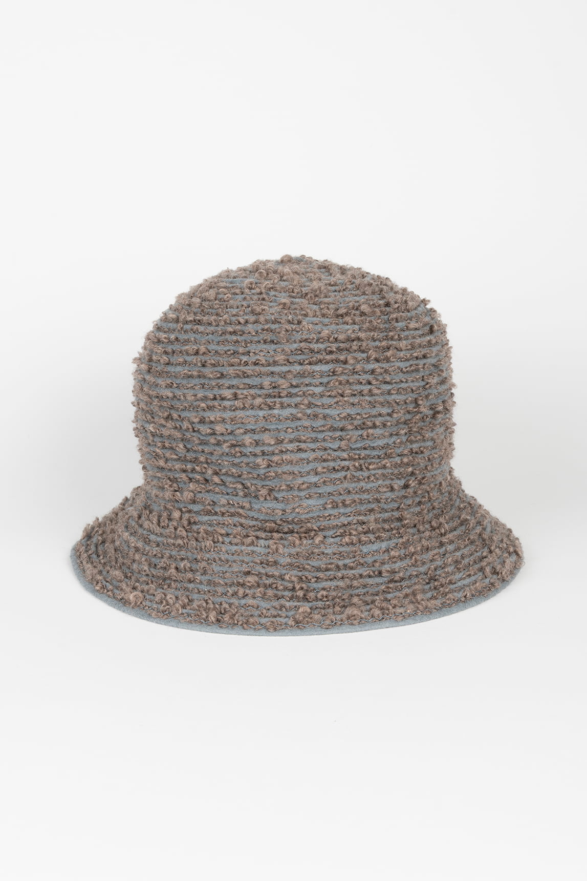 Este sombrero juega con el volumen y la textura bouclé para ofrecer un diseño distintivo. Ideal para estilismos contemporáneos y urbanos que necesitan un toque original,