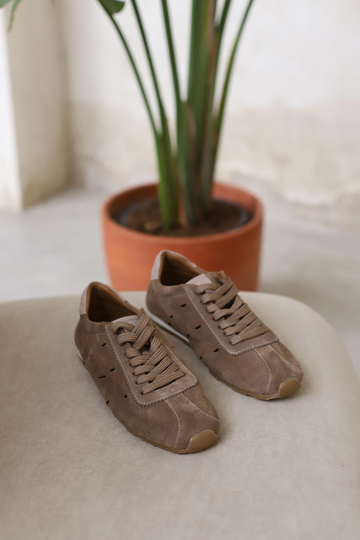 El tono topo aporta profundidad y elegancia, convirtiéndola en una opción muy versátil que combina fácilmente con tonos neutros, blancos, arena o denim. Una zapatilla cómoda y sofisticada ideal para looks relajados con un toque contemporáneo.