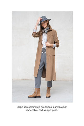“Intención Serena” es el cuarto capítulo de la colección OI25. Un lookbook que reivindica el lujo de elegir con calma: prendas bien construidas, tejidos con peso y textura, y una estética que apuesta por la sobriedad y el confort.