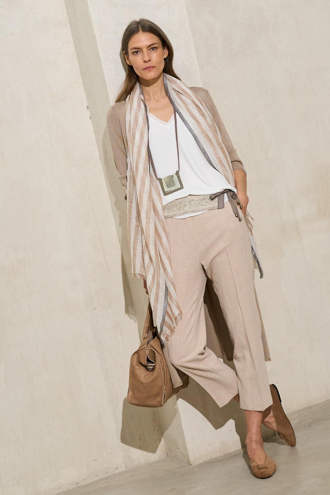 De líneas depuradas y aire sastre, este pantalón presenta cintura estructurada con trabillas, cierre frontal con botón y una abertura discreta que mantiene el delantero limpio. Las pinzas frontales aportan forma y caída, mientras los bolsillos laterales en diagonal suman funcionalidad sin romper la silueta. La pernera se estrecha suavemente hacia el bajo, con un largo tobiller o que estiliza y deja el look ligero. Su corte slim relajado equilibra lo formal y lo cotidiano: combina fácil con camiseta blanca y zapatillas para un contraste moderno, o con camisa y mocasín para un conjunto más pulido. En tonos neutros se integra sin esfuerzo y funciona como base para capas, desde un blazer corto hasta un punto fino. Disponible también en negro. Pensado para días de oficina, cenas informales o viajes, se lleva con naturalidad y siempre se ve cuidado: una prenda que define la figura con sutileza, acompaña el movimiento y eleva cualquier combinación con un gesto sencillo. Nos esforzamos por mostrar los colores de la forma más fiel posible, pero pueden variar ligeramente respecto a la realidad.
