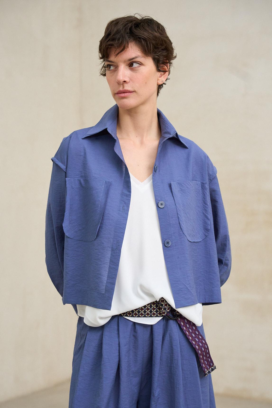 A camisa azul-marinho Brisa é uma peça leve, de inspiração utilitária, reinterpretada com um toque contemporâneo. Confecionada em tecido suave e estruturado, possui gola de camisa, fecho frontal com botões e dois bolsos frontais que oferecem funcionalidade sem abdicar da elegância. A sua silhueta direita e ligeiramente larga permite que seja usada aberta ou fechada, funcionando como uma sobrecamisa ou uma camisa leve para a meia-estação. O azul-marinho profundo e versátil acrescenta personalidade ao look e combina facilmente com branco, bege, areia ou tons terra. A camisa Brisa é uma peça prática e intemporal, ideal para complementar looks casuais com calças largas, jeans ou conjuntos coordenados, proporcionando uma estrutura sem rigidez. Esforçamo-nos por exibir as cores da forma mais precisa possível, mas podem variar ligeiramente da realidade.