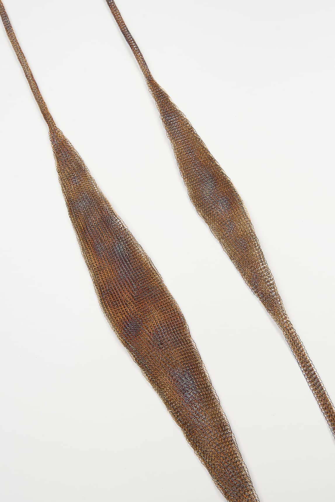 - Collar largo de malla metálica flexible con acabado en tonos bronce.