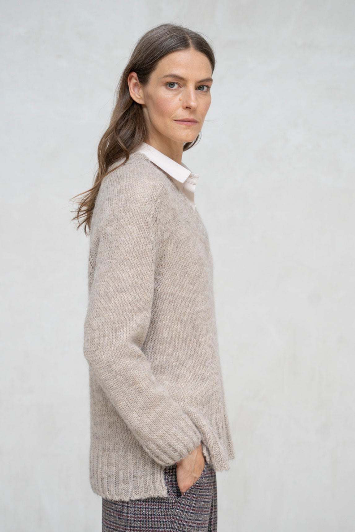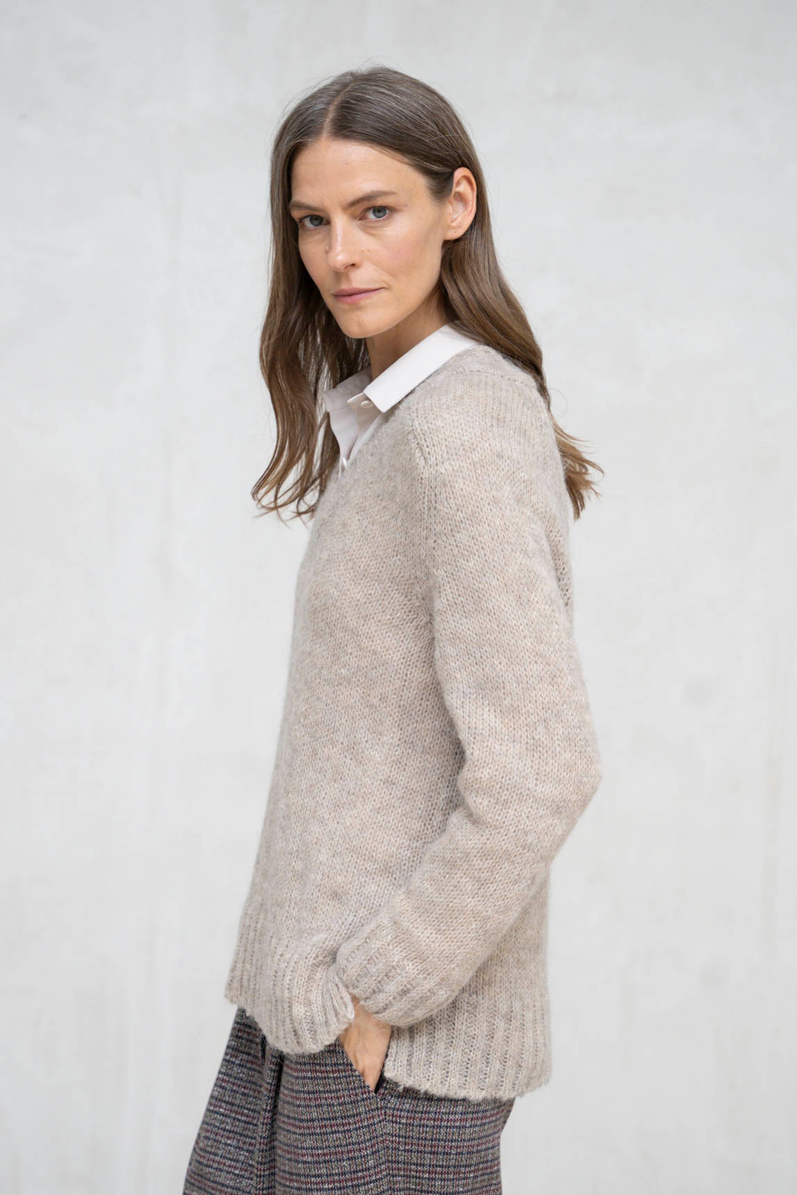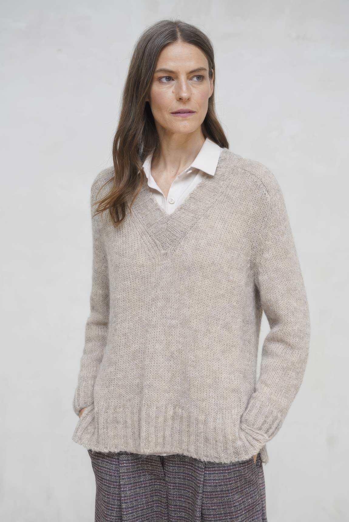A camisola bege Specco é uma peça versátil e elegante, ideal para aquecer os seus looks de outono e inverno. O seu decote em V realça o decote e permite combiná-lo com camisas ou blusas para um look mais sofisticado. Feito de um tecido suave e confortável, é perfeito tanto para o dia a dia como para os momentos de lazer. O tom taupe discreto e intemporal facilita a combinação com diferentes combinações de cores, tornando-o um item essencial no guarda-roupa.