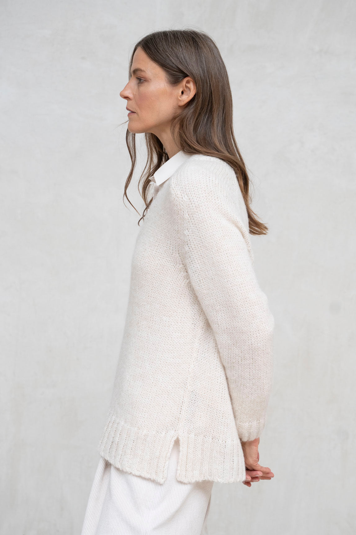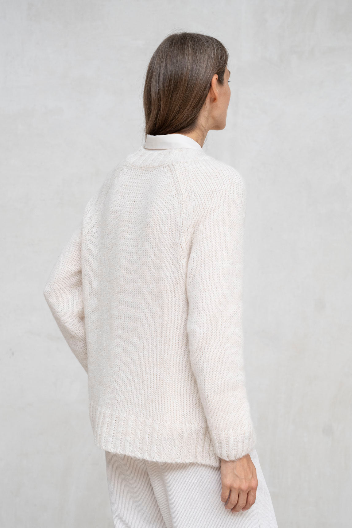 A camisola branca Specco é a peça perfeita para adicionar aconchego e estilo aos seus looks de outono e inverno. O seu decote em V estiliza o pescoço e permite usar camisas ou blusas por baixo, acrescentando um toque sofisticado. Feito de um tecido macio e fofo, oferece uma sensação de conforto envolvente, ideal para o dia a dia ou ocasiões mais descontraídas. A sua cor neutra facilita a combinação com qualquer paleta, tornando-o uma peça essencial e intemporal no seu guarda-roupa.