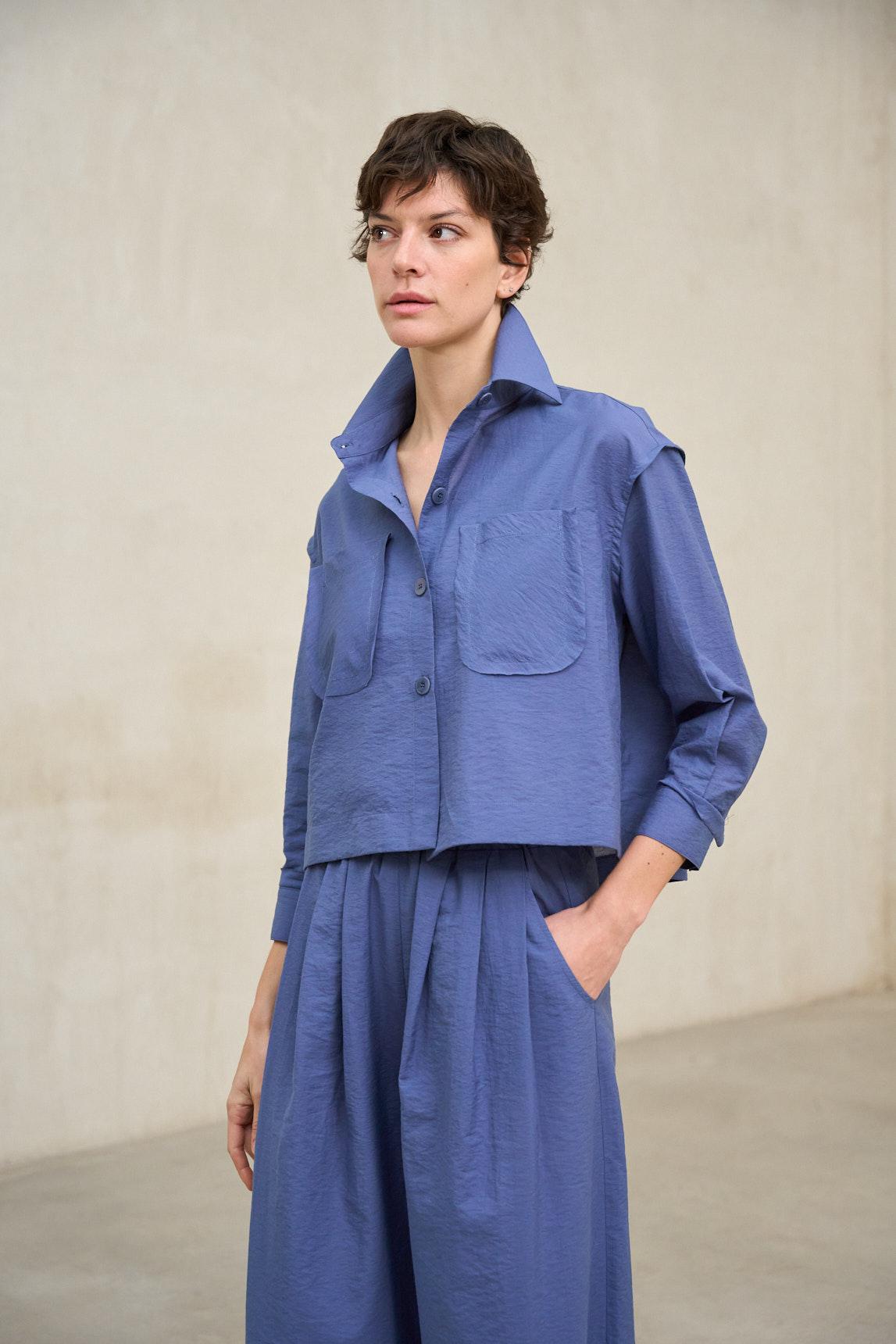 A camisa azul-marinho Brisa é uma peça leve, de inspiração utilitária, reinterpretada com um toque contemporâneo. Confecionada em tecido suave e estruturado, possui gola de camisa, fecho frontal com botões e dois bolsos frontais que oferecem funcionalidade sem abdicar da elegância. A sua silhueta direita e ligeiramente larga permite que seja usada aberta ou fechada, funcionando como uma sobrecamisa ou uma camisa leve para a meia-estação. O azul-marinho profundo e versátil acrescenta personalidade ao look e combina facilmente com branco, bege, areia ou tons terra. A camisa Brisa é uma peça prática e intemporal, ideal para complementar looks casuais com calças largas, jeans ou conjuntos coordenados, proporcionando uma estrutura sem rigidez. Esforçamo-nos por exibir as cores da forma mais precisa possível, mas podem variar ligeiramente da realidade.