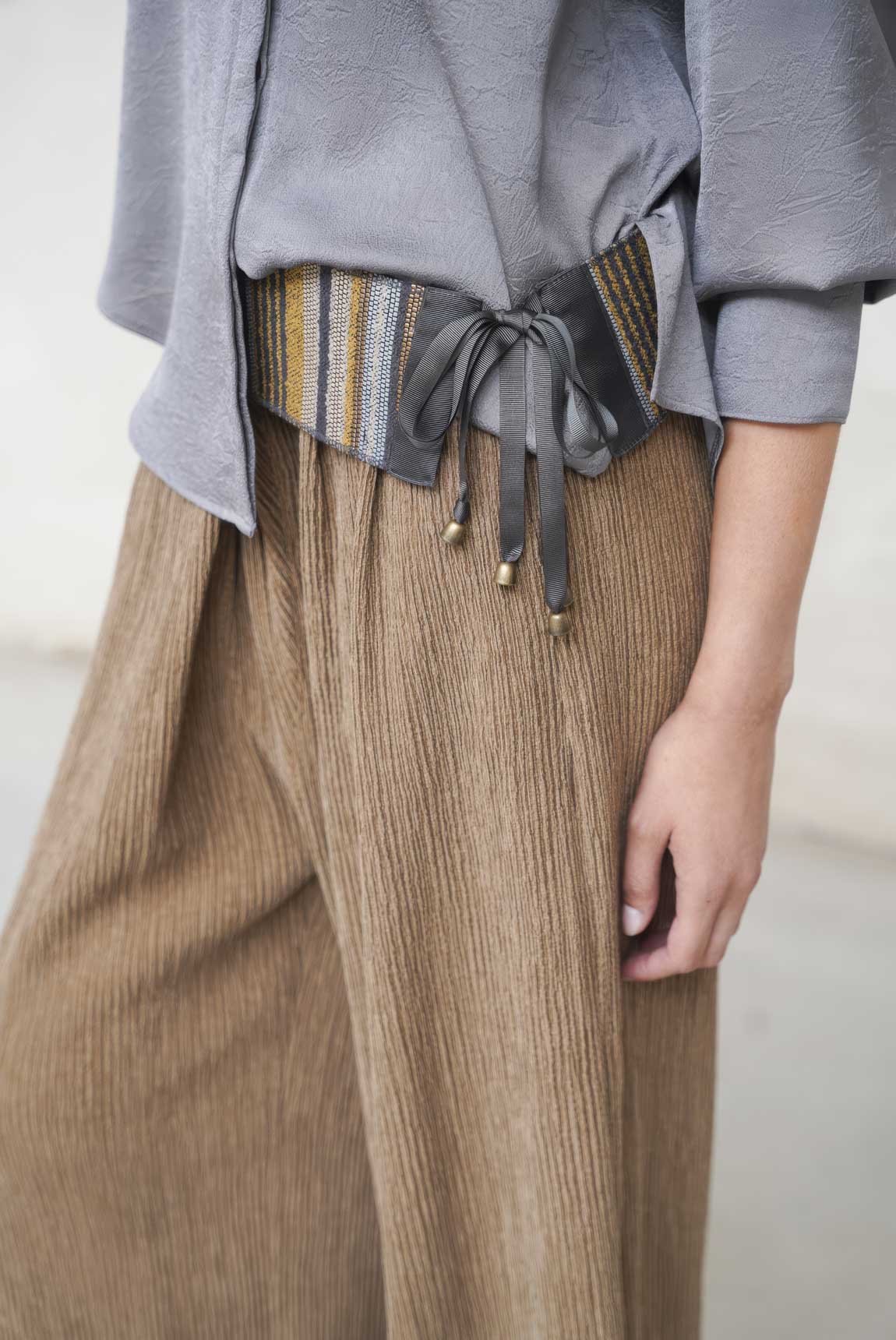 A faixa Serina da Rivera é o acessório perfeito para elevar qualquer look com um toque contemporâneo e artesanal. O seu tecido listrado multicolorido e a textura étnica combinam tons quentes e neutros para equilíbrio visual e estilo boho chic. O seu formato largo e flexível realça a silhueta e permite um ajuste fácil graças às suas longas tiras com acabamento metálico. Ideal para combinar com vestidos, camisas ou peças fluídas para dar personalidade ao seu look.