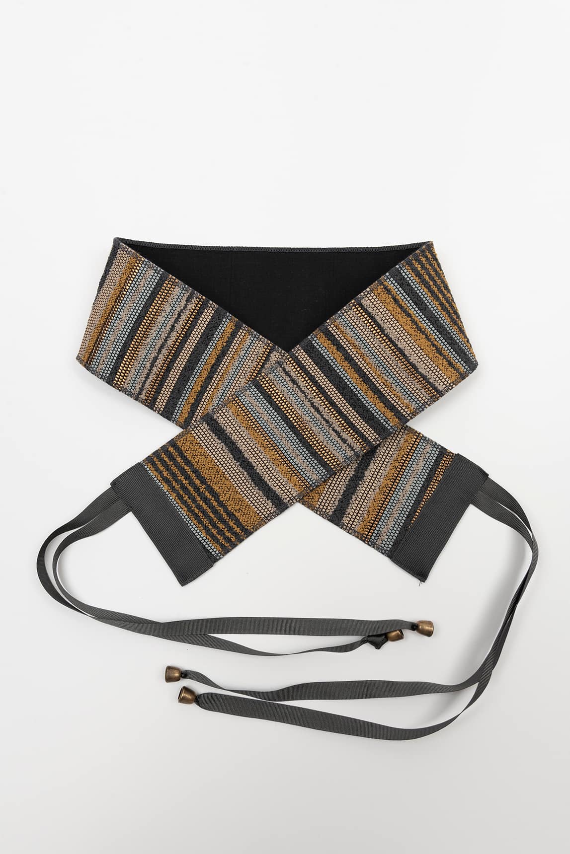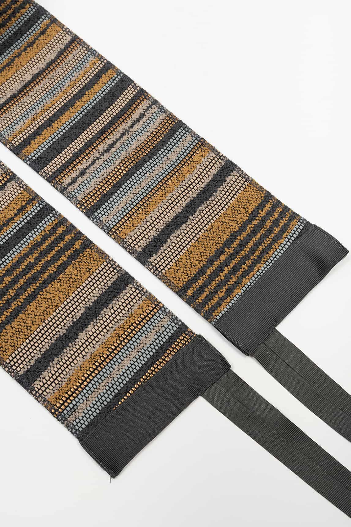 - Faixa larga com design étnico listrado.