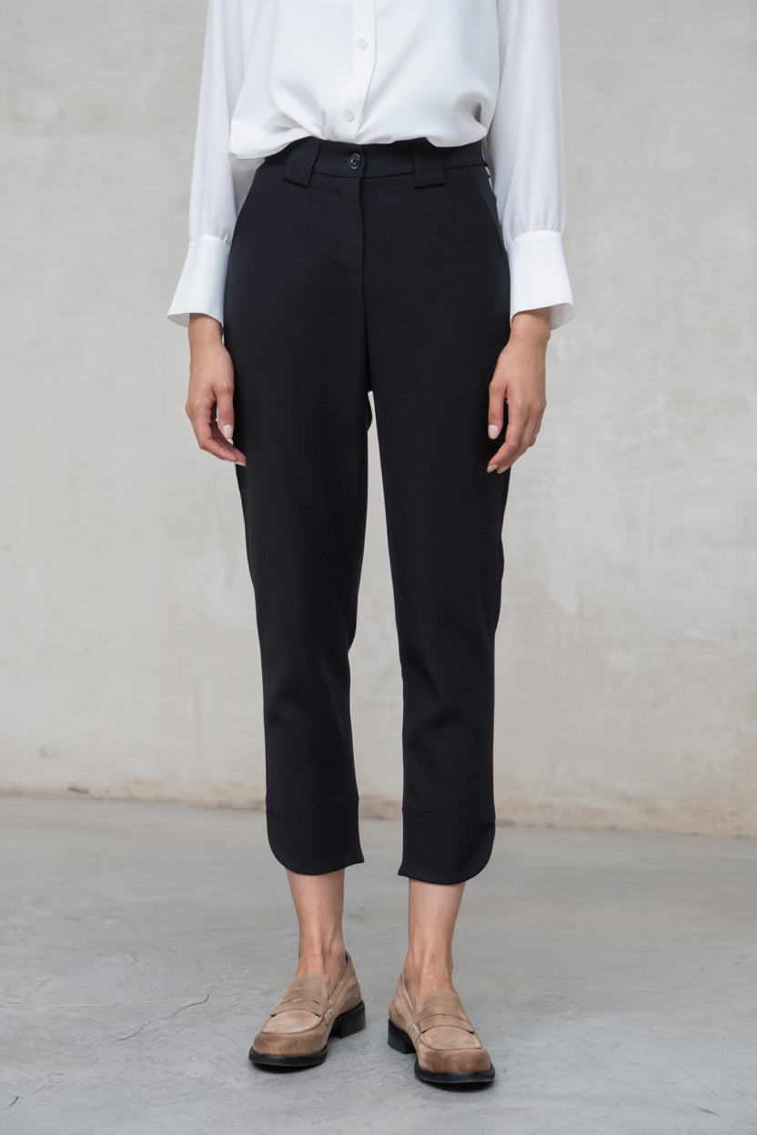 - Pantalón tobillero con pequeña abertura lateral en el bajo.