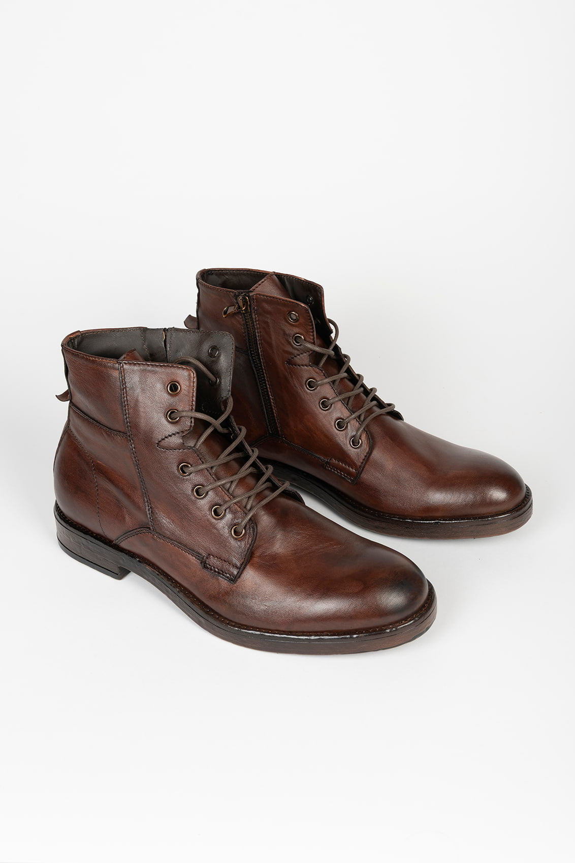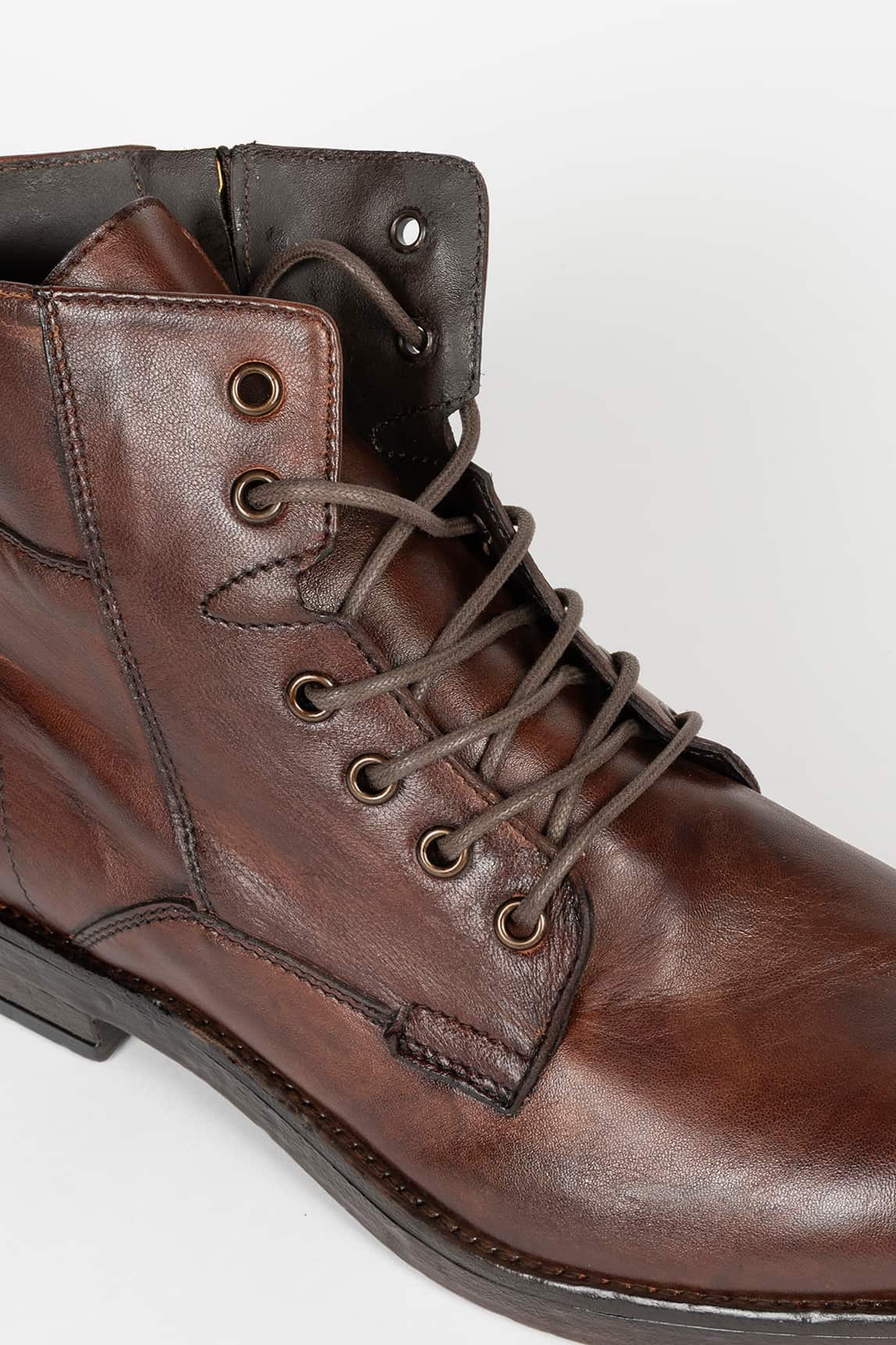 - Botín de hombre confeccionado en piel lisa de acabado ligeramente envejecido.