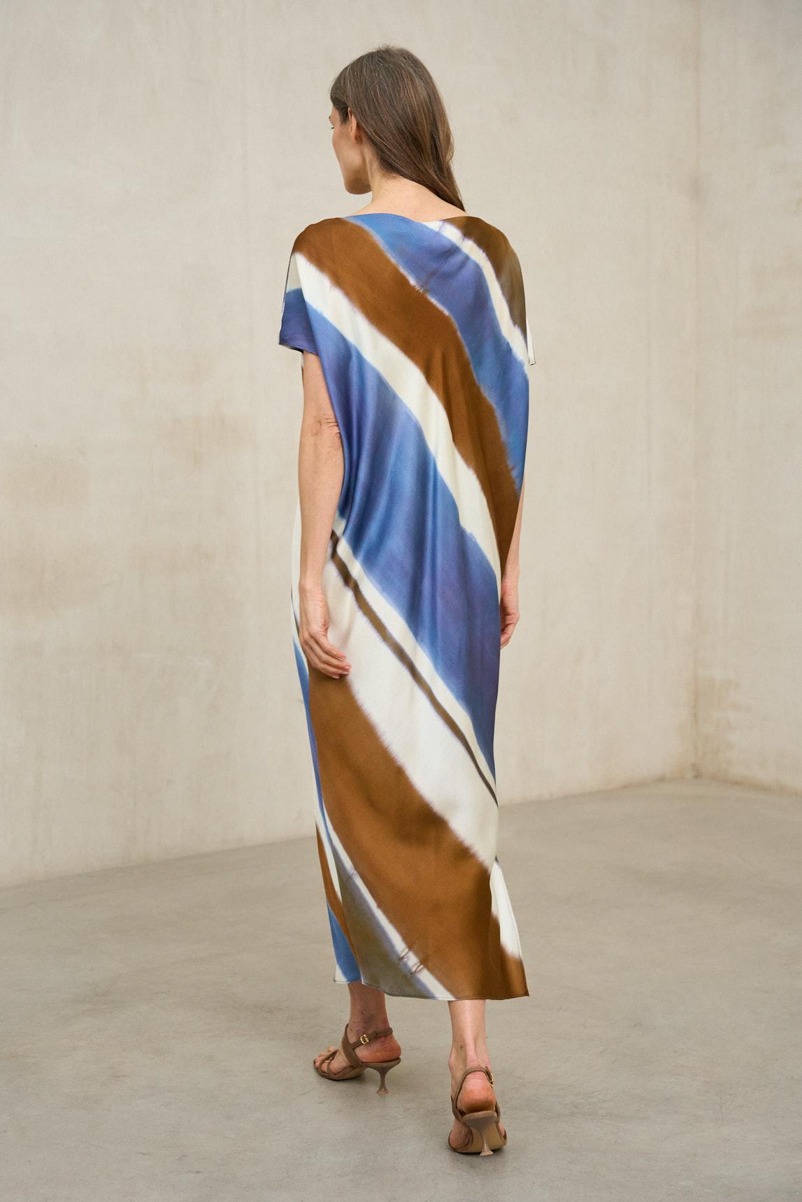 O vestido Vaela com estampado geométrico é uma peça fluida e contemporânea que combina cor, movimento e leveza numa silhueta solta e favorecedora. O seu design sem mangas e em formato A proporciona um ajuste natural que acompanha suavemente o corpo, acrescentando dinamismo ao seu caminhar. O estampado em blocos de cor em tons terra, azul e marfim cria um efeito visual orgânico e artístico que faz da peça o destaque do look. O decote amplo e as cavas ligeiramente abertas reforçam a sua estética descontraída, enquanto o tecido leve aumenta a sensação de frescura e conforto. Ideal para os meses mais quentes, o vestido Vaela pode ser usado com sandálias rasas para um look descontraído ou com acessórios estruturados para uma produção mais sofisticada. É uma opção versátil para o dia a dia, viagens de verão ou eventos informais onde o conforto e o estilo são essenciais. Esforçamo-nos por exibir as cores da forma mais precisa possível, mas podem variar ligeiramente da realidade.